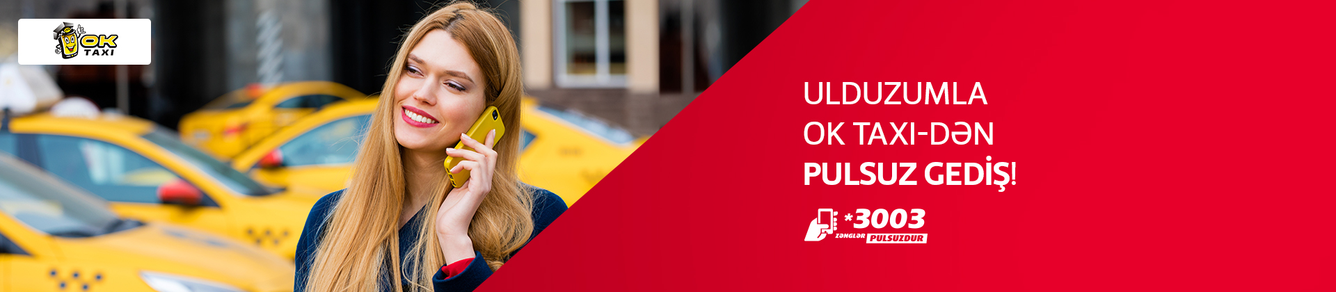 Ulduzumla OK taksidən hər 11-ci şəhərdaxili sifariş (10km qədər) PULSUZDUR.OK taksidən PULSUZ gediş əldə etdikdən sonra, Ulduzum xidmətinə görə balansınızdan 0.03AZN çıxılacaq.ÜnvanlarƏhməd Rəcəbli 1/6Telefonlar*3003Veb sayt3003.az/az