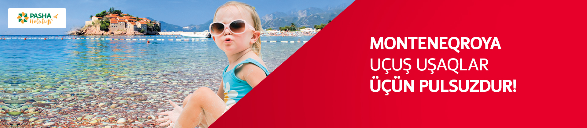 Fevralın 6-dan martın 1-nə qədər Monteneqroya səyahət paketini Ulduzum kodu ilə rezervasiya edin və ailəniz üçün inanılmaz fürsət qazanın! Monteneqroya 2 valideyn ilə səyahət edən 12 yaşına qədər olan 1 uşağa, təyyarə bileti pulsuzdur.