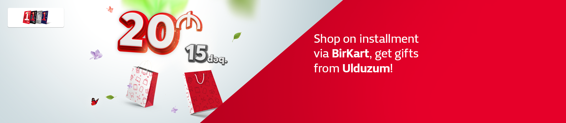 Until April 5, shop by BirKart, and get FREE 15 on-net minutes from Bakcell Ulduzum after every shopping for 100 AZN and more on installment and 20 AZN after the third shopping on installment!