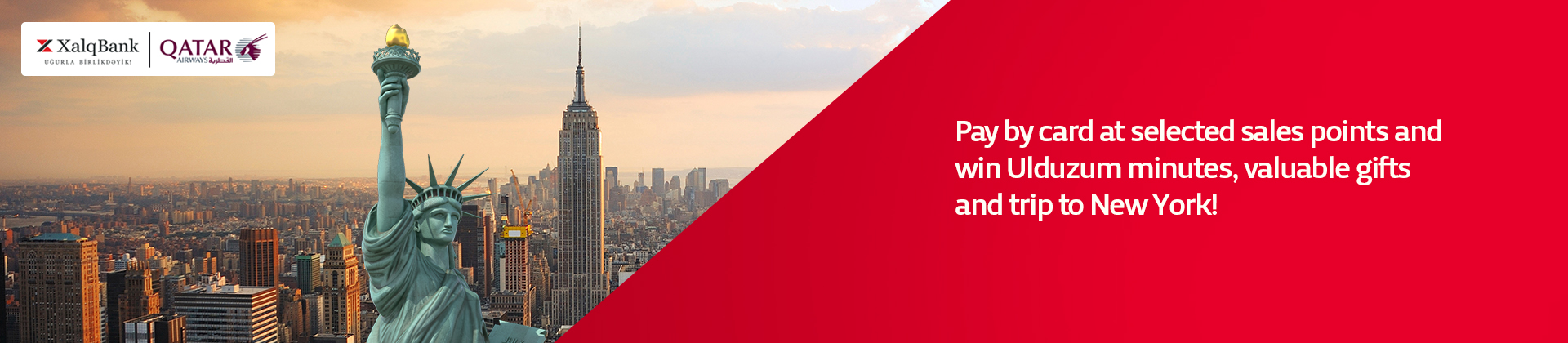Within "Trip to New York" campaign, customers who performed bank operations according to the conditions described in the section "Partners Shopping Points", http://www.xalqbank.az/az/aksiya/partners/ will receive on mobile phone balance up to 40 minutes from Bakcell.