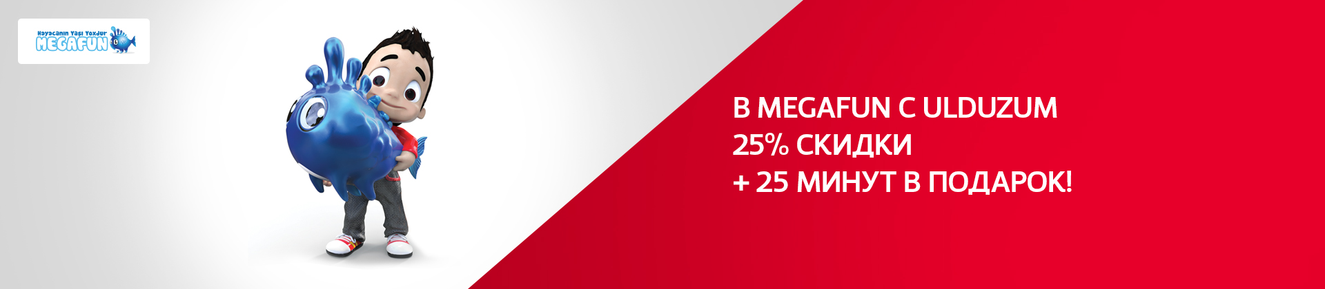 Все абоненты Ulduzum получат 25% СКИДКИ на игры и 25 минут внутри сети в ПОДАРОК, при загрузке 20 AZN на карту Megafun.