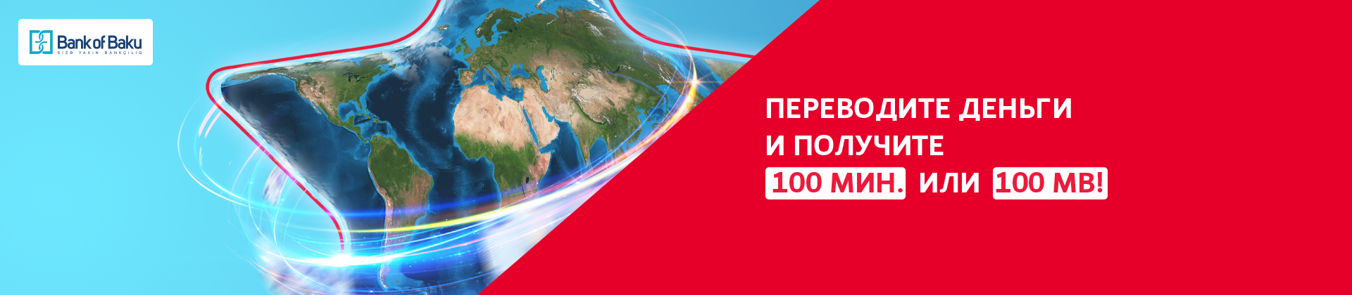 Все абоненты Bakcell при отправлении денег (на любую сумму) в филиалах Bank of Baku посредством кода Ulduzum получат в подарок минуты или мегабайты! После отправления денег вы свободны, выбрать 100 минут внутри сети или 100 MB в качестве подарка.
